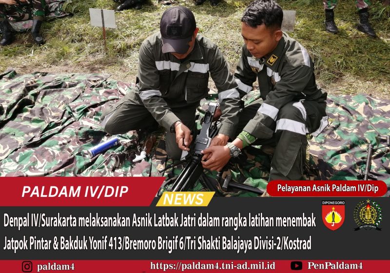 Denpal IV/4 Surakarta melaksanakan Asnik Latbak dalam rangka latihan menembak Jatpok Lintar dan Bakduk Yonif 413/Bremoro bertempat di daerah latihan Lapbak Bukit Mongkrang (Surakarta, 13 Juni 2025).